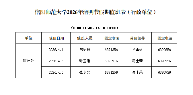 审计处2026年清明节假期值班表